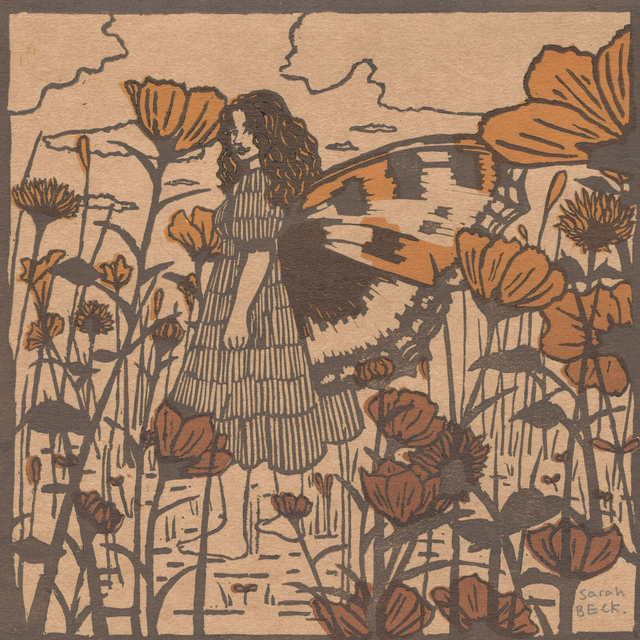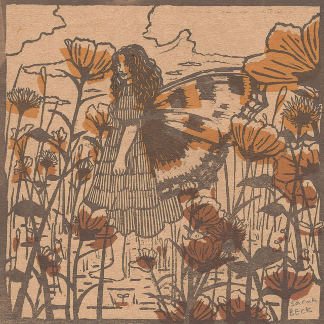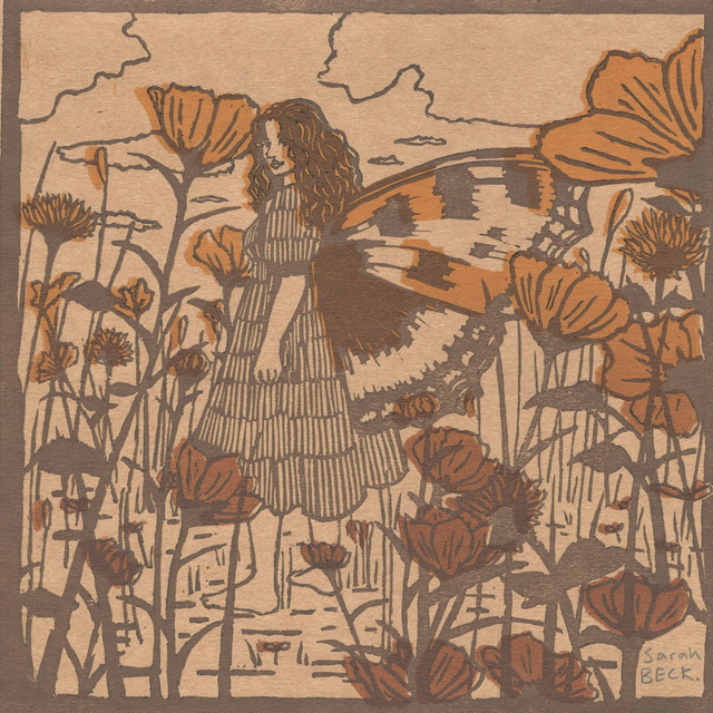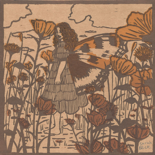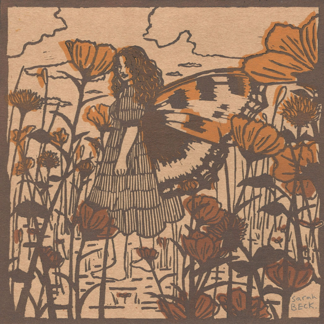 'Butterfly Meadow/ September Fairy' two layered Lino-Print. Designed, carved and printed by (me) Sarah Beck.
